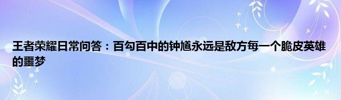 小编今天给各位玩家朋友们带来的是王者荣耀日常问答:百勾百中的钟馗永远是敌方每一个脆皮英雄的噩梦,有记得的玩家朋友吗?不记得也没有关系,小编已经帮助大家把王者荣耀日常问答:百勾百中的钟馗永远是敌方每一个脆皮英雄的噩梦找了出来,你只需要动动你的小手就可以轻松知道啦,快来瞧一瞧吧。