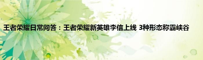 小编今天给各位玩家朋友们带来的是王者荣耀日常问答:王者荣耀新英雄李信上线,3种形态称霸峡谷,有记得的玩家朋友吗?不记得也没有关系,小编已经帮助大家把王者荣耀日常问答:王者荣耀新英雄李信上线,3种形态称霸峡谷找了出来,你只需要动动你的小手就可以轻松知道啦,快来瞧一瞧吧。