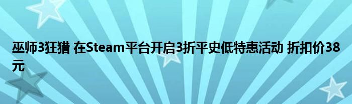 今日,《巫师3:狂猎》在Steam平台开启3折平史低特惠活动,折扣价38元,《巫师3:狂猎年度版》也开启3折优惠,售价47元,活动截止至6月2日。
