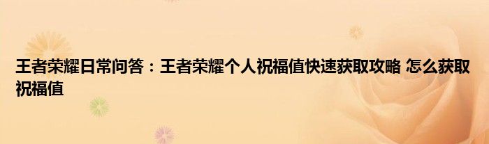以上就是王者荣耀日常问答:王者荣耀个人祝福值快速获取攻略,怎么获取祝福值的推荐,相信通过王者荣耀日常问答:王者荣耀个人祝福值快速获取攻略,怎么获取祝福值这篇文章能帮到你,也欢迎对游戏很感兴趣小伙伴们一起来探讨。