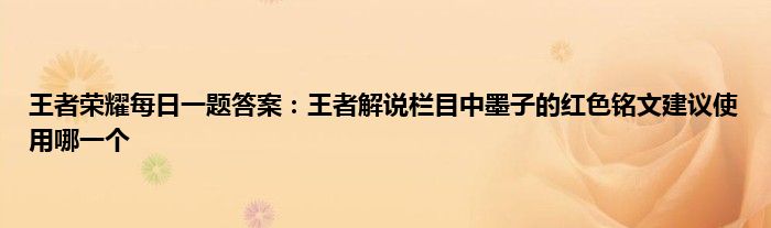 以上就是王者荣耀每日一题答案:王者解说栏目中墨子的红色铭文建议使用哪一个的推荐,相信通过王者荣耀每日一题答案:王者解说栏目中墨子的红色铭文建议使用哪一个这篇文章能帮到你,也欢迎对游戏很感兴趣小伙伴们一起来探讨。