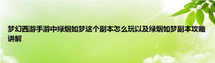 以上就是梦幻西游手游中绿烟如梦这个副本怎么玩以及绿烟如梦副本攻略讲解的推荐,相信通过梦幻西游手游中绿烟如梦这个副本怎么玩以及绿烟如梦副本攻略讲解这篇文章能帮到你,也欢迎对游戏很感兴趣小伙伴们一起来探讨。