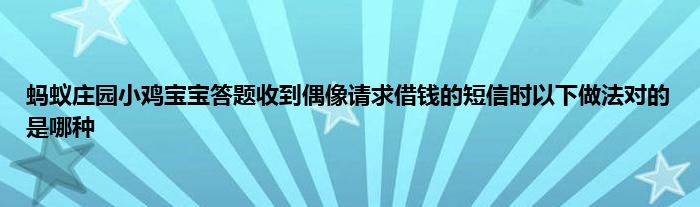 今天明哥就为小伙伴们讲解下蚂蚁庄园小鸡宝宝答题收到偶像请求借钱的短信时以下做法对的是哪种,相信很多玩蚂蚁庄园的小伙伴们都想知道这个答案吧,那么小编也收集到了有关蚂蚁庄园小鸡宝宝答题收到偶像请求借钱的短信时以下做法对的是哪种的相关资料希望大家会喜欢。