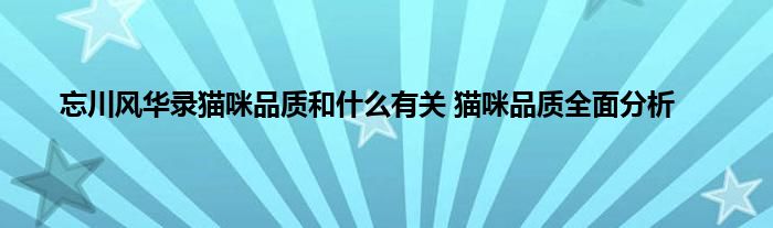 在手游忘川风华录中,很多玩家都热衷于养猫。猫猫也有品质之分,那么品质好的猫猫和品质坏的猫猫有什么区别呢?一起和小编来看看忘川风华录猫咪品质全面分析吧~