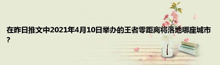 在昨日推文中,2021年4月10日举办的王者零距离,将落地哪座城市?