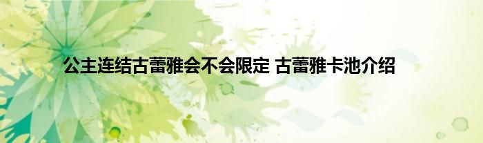 公主连结古蕾雅是联动活动当中上线的一个角色,目前角色的卡池已经开启了,很多玩家都想要获得这个角色了,但是对于角色还不是特殊的了解,那么古蕾雅卡池值不值得抽呢?古蕾雅是不是限定呢?很多玩家不知道了,那下面就让小编给玩家们带来相关的介绍,一起来和小编看一看吧。