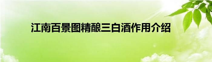 以上就是小编为各位玩家带来的关于江南百景图精酿三白酒作用介绍,小伙伴们可以使用精酿三白酒来恢复自己的体力。