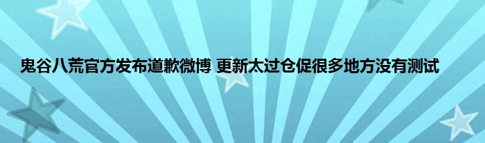 鬼谷八荒最近迎来更新内容,这次的更新也让等待已久的玩家们兴奋,一时间游戏人数突破11万大关。不过这久违的新版本也并非尽善尽美,很多地方都有bug或者设置不合理的地方,因此今天官方就发布了道歉微博,一起来看看吧。