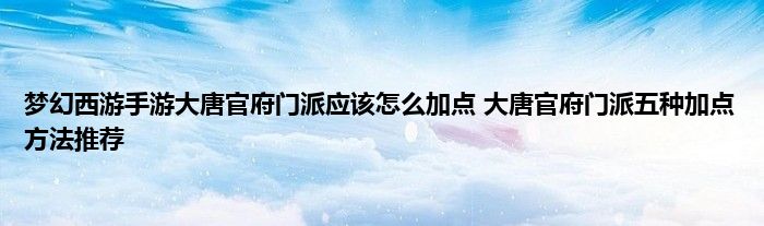 今天来聊聊关于梦幻西游手游大唐官府门派应该怎么加点 大唐官府门派五种加点方法推荐的文章,游戏是很多人的选择,但是游戏玩多了也会身心疲惫,现在就为大家来简单介绍下梦幻西游手游大唐官府门派应该怎么加点 大唐官府门派五种加点方法推荐,希望对各位小伙伴们有所帮助。