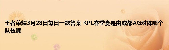 王者荣耀公众号每日都会推出一道问题,只需要回复wz+正确答案就可以获得每日奖励。今天(3月28日)的问题是:昨日推文中提到的KPL春季赛是由成都AG对阵哪个队伍呢?小编这就来告诉大家王者荣耀3月28日每日一题答案的正确答案。