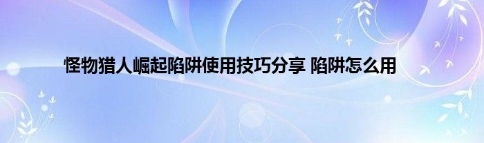 怪物猎人崛起当中玩家可以使用不同的道具来进行战斗,这些道具对你战斗都是有很大的帮助的,其中就有一种陷阱的道具。利用好各种陷阱可以让你战斗变得更为简单,但是一些玩家不知道陷阱要如何才能使用,那下面就在这篇攻略里面一起探寻一下陷阱的使用技巧和方法吧。