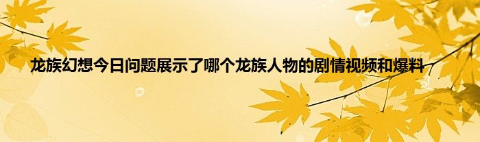 小编今天给各位玩家朋友们带来的是龙族幻想今日问题展示了哪个龙族人物的剧情视频和爆料,有记得的玩家朋友吗?不记得也没有关系,小编已经帮助大家把龙族幻想今日问题展示了哪个龙族人物的剧情视频和爆料找了出来,你只需要动动你的小手就可以轻松知道啦,快来瞧一瞧吧。