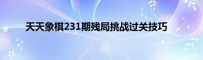 天天象棋231期残局挑战过关技巧