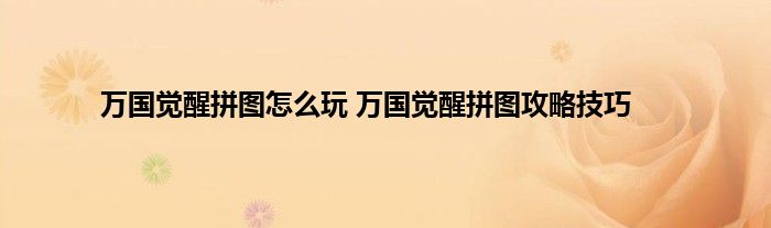 万国觉醒拼图攻略技巧