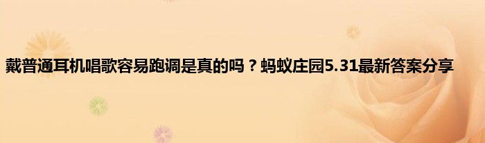 大家好,今天是5月31日,今天的蚂蚁庄园答案已经出来了,和小常识有关,大家都知道歌手唱歌都喜欢带耳返,一般 人唱歌的时候则会戴耳机,那么戴耳机唱歌是否会更容易跑调呢,下面就来尾随蚕豆小编一起来看看正确答案吧。