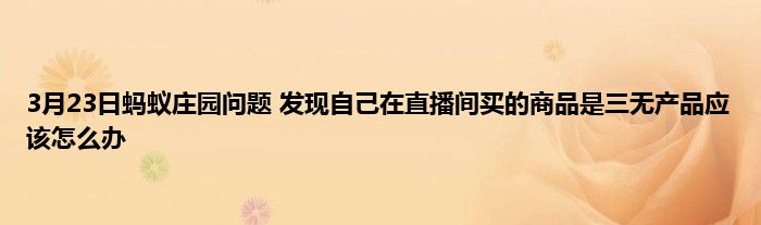 今天弟哥来分享一篇关于3月23日蚂蚁庄园问题 发现自己在直播间买的商品是三无产品应该怎么办的文章,游戏是很多人的选择,但是游戏玩多了也会身心疲惫,现在就为大家来简单介绍下3月23日蚂蚁庄园问题 发现自己在直播间买的商品是三无产品应该怎么办,希望对各位小伙伴们有所帮助。