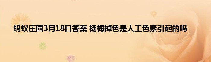 蚂蚁庄园今日答案是什么?蚂蚁庄园每天都会问玩家一些问题,答对了的话就能领取饲料给小鸡喂食。3月18日的最新问题公布,这次的问题是:清洗杨梅时发现杨梅掉色,这一定是添加人工色素引起的吗?以下是详细答案,一起来看看吧。