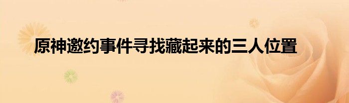 感谢你在百忙之中抽出时间阅读原神邀约事件寻找藏起来的三人位置这篇文章。你觉得今天原神邀约事件寻找藏起来的三人位置话题怎么样?关于原神邀约事件寻找藏起来的三人位置这篇文章的任何评论都可以告诉我。你的每一个建议都是对小编辑的肯定和鼓励。小编明天会继续给你带来更多的好内容。我希望你不要错过。感谢支持哟!