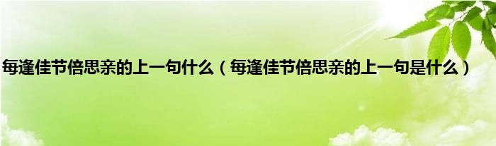 每逢佳节倍思亲的上一句什么(每逢佳节倍思亲的上一句是什么)