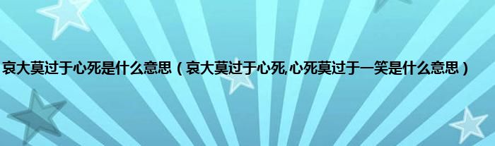 大家好,小科来为大家解答以上问题。哀大莫过于心死是什么意思,哀大莫过于心死,心死莫过于一笑是什么意思很多人还不知道,现在让我们一起来看看吧!
