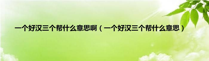大家好,小科来为大家解答以上问题。一个好汉三个帮什么意思啊,一个好汉三个帮什么意思很多人还不知道,现在让我们一起来看看吧!
