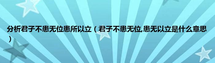 大家好,小科来为大家解答以上问题。分析君子不患无位患所以立,君子不患无位,患无以立是什么意思很多人还不知道,现在让我们一起来看看吧!