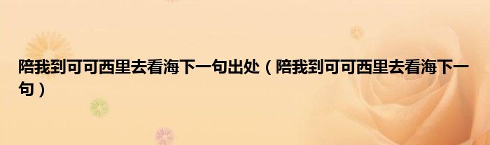 大家好,小科来为大家解答以上问题。陪我到可可西里去看海下一句出处,陪我到可可西里去看海下一句很多人还不知道,现在让我们一起来看看吧!
