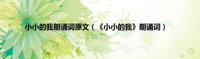大家好,小科来为大家解答以上问题。小小的我朗诵词原文,《小小的我》朗诵词很多人还不知道,现在让我们一起来看看吧!