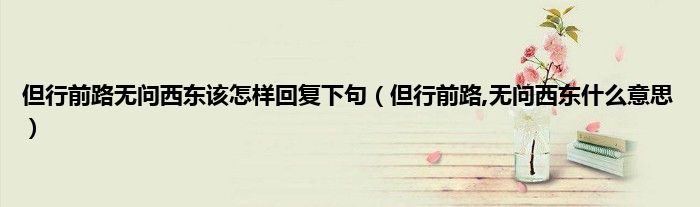 1、 "但行前路,不要问任何事情”的意思是:只要朝着你的梦想大步前进,满腔热血和真诚地前进,不要在乎结果会是什么。