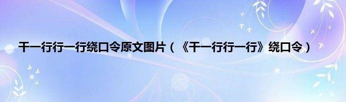 大家好,小科来为大家解答以上问题。干一行行一行绕口令原文图片,《干一行行一行》绕口令很多人还不知道,现在让我们一起来看看吧!