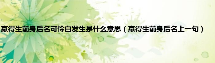 大家好,小科来为大家解答以上问题。赢得生前身后名可怜白发生是什么意思,赢得生前身后名上一句很多人还不知道,现在让我们一起来看看吧!
