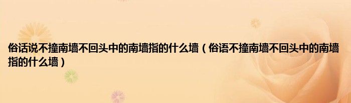 大家好,小科来为大家解答以上问题。俗话说不撞南墙不回头中的南墙指的什么墙,俗语不撞南墙不回头中的南墙指的什么墙很多人还不知道,现在让我们一起来看看吧!