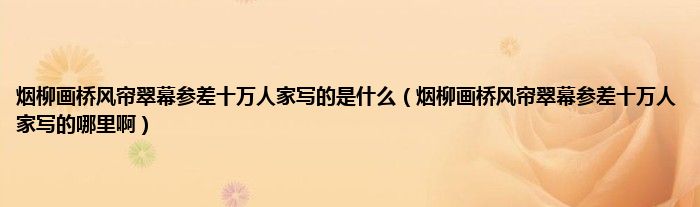 大家好,小科来为大家解答以上问题。烟柳画桥风帘翠幕参差十万人家写的是什么,烟柳画桥风帘翠幕参差十万人家写的哪里啊很多人还不知道,现在让我们一起来看看吧!