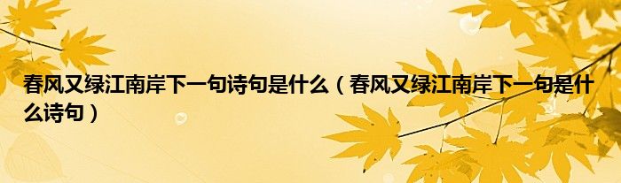 1、 春风又变绿了。江南岸下一句:明月几时照我?这首诗的意思是:“春风又一次把大江南岸吹绿了。明月几时照我归途?”这句话出自《泊船瓜洲》,是北宋诗人王安石写的。它用直白的笔触表现了强烈的思乡之情。全诗如下: