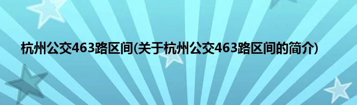 本文关于杭州公交463路区间的简介就讲解完毕,希望对大家有所帮助。