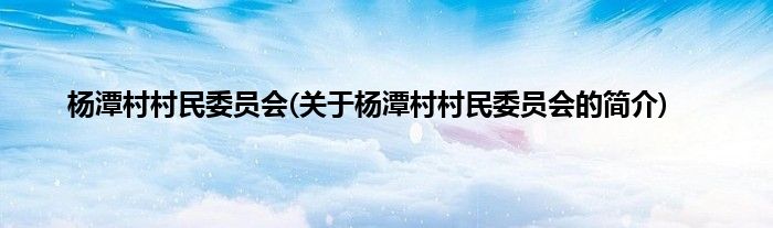 本文关于杨潭村村民委员会的简介就讲解完毕,希望对大家有所帮助。