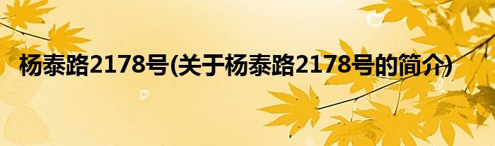 大家好,杨泰路2178号,关于杨泰路2178号的简介很多人还不知道,现在让我们一起来看看吧!
