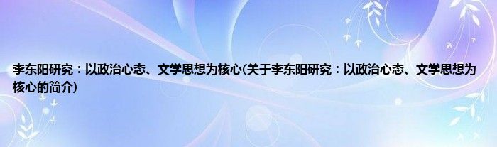大家好,李东阳研究:以政治心态、文学思想为核心,关于李东阳研究:以政治心态、文学思想为核心的简介很多人还不知道,现在让我们一起来看看吧!