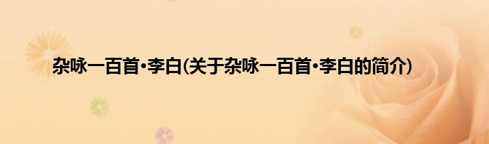 本文关于杂咏一百首·李白的简介就讲解完毕,希望对大家有所帮助。