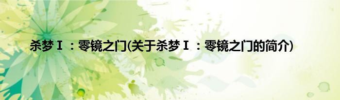 本文关于杀梦Ⅰ:零镜之门的简介就讲解完毕,希望对大家有所帮助。