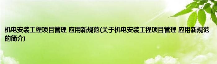 本文关于机电安装工程项目管理 应用新规范的简介就讲解完毕,希望对大家有所帮助。