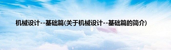 大家好,机械设计--基础篇,关于机械设计--基础篇的简介很多人还不知道,现在让我们一起来看看吧!