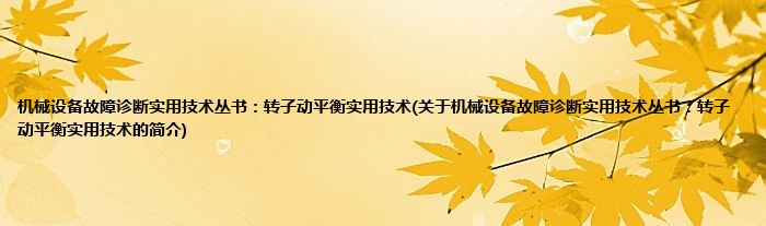 本文关于机械设备故障诊断实用技术丛书:转子动平衡实用技术的简介就讲解完毕,希望对大家有所帮助。
