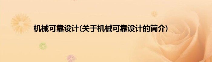 大家好,机械可靠设计,关于机械可靠设计的简介很多人还不知道,现在让我们一起来看看吧!