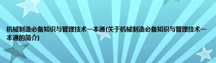 1、 《机械制造必备知识与管理技术一本通》是2013年机械工业出版社出版的图书。
