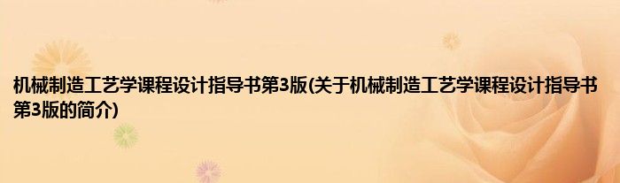 本文关于机械制造工艺学课程设计指导书第3版的简介就讲解完毕,希望对大家有所帮助。