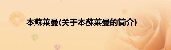 大家好,本蘇莱曼,关于本蘇莱曼的简介很多人还不知道,现在让我们一起来看看吧!