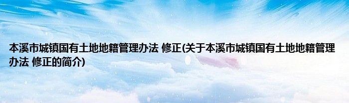 大家好,本溪市城镇国有土地地籍管理办法 修正,关于本溪市城镇国有土地地籍管理办法 修正的简介很多人还不知道,现在让我们一起来看看吧!