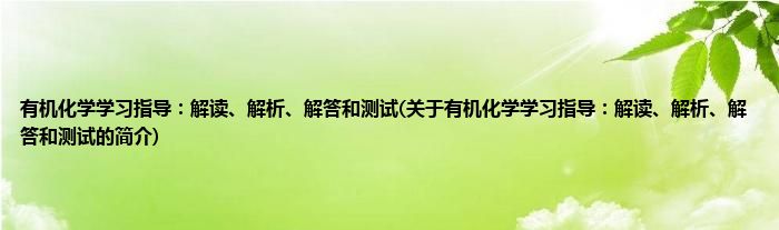 本文关于有机化学学习指导:解读、解析、解答和测试的简介就讲解完毕,希望对大家有所帮助。