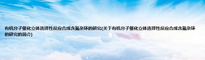 本文关于有机分子催化立体选择性反应合成含氟杂环的研究的简介就讲解完毕,希望对大家有所帮助。